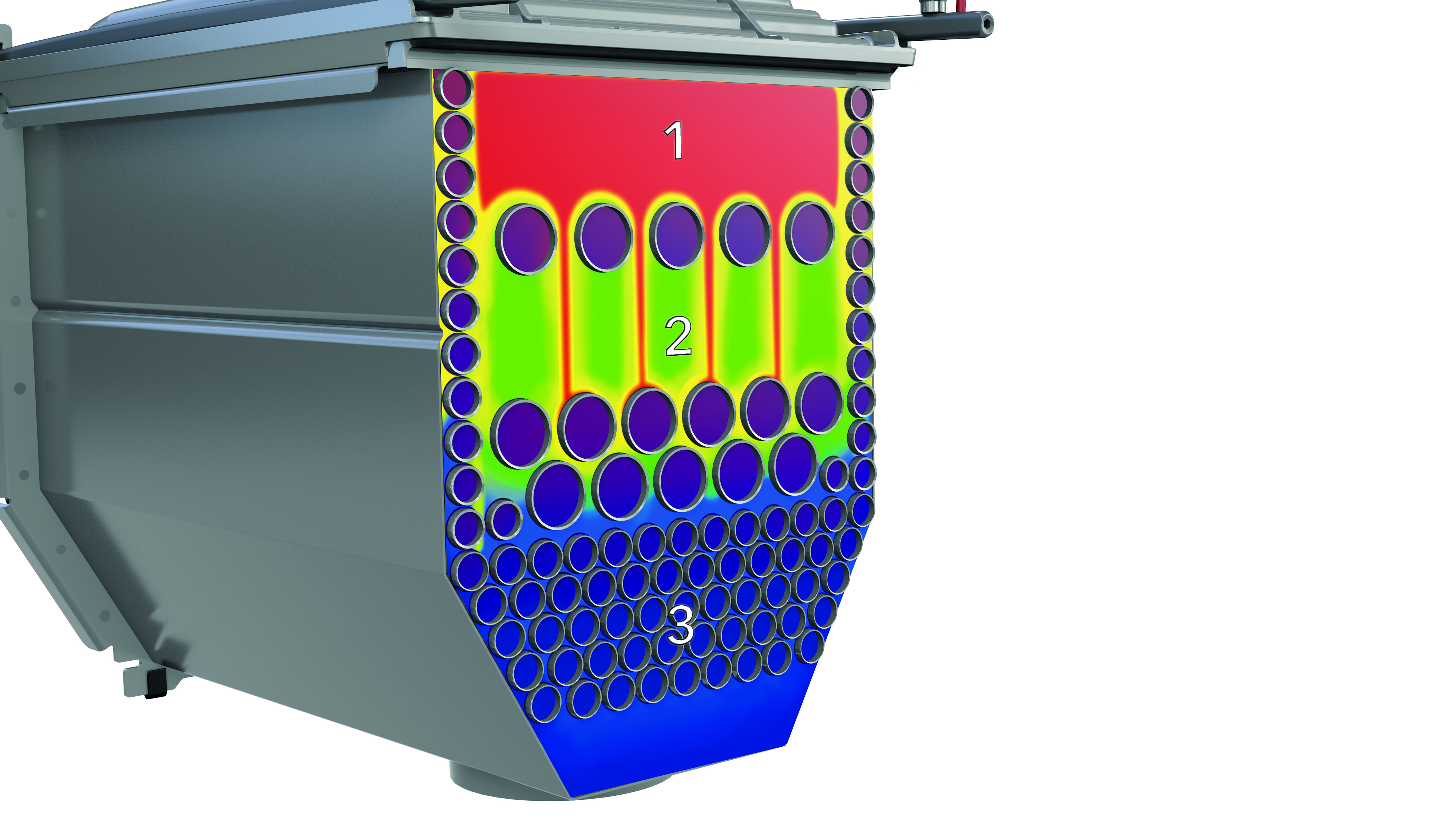 TRIGON® L PLUS conține tehnologia unică HEX3 de la ELCO, care structurează schimbătorul de căldură în trei zone.